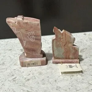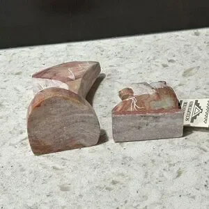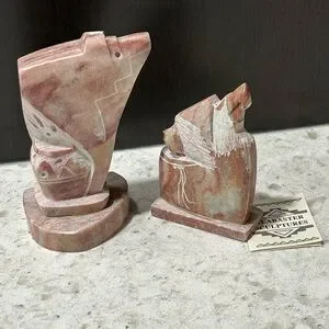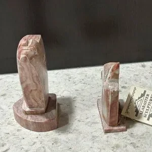 Elegant alabaster sculptures featuring a blend of brown and cream tones. Perfect for adding a touch of sophistication to your home decor.