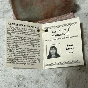 Native American Navajo Alabaster Carved Indian Chief/Eagle Olla Bowl Certificate
