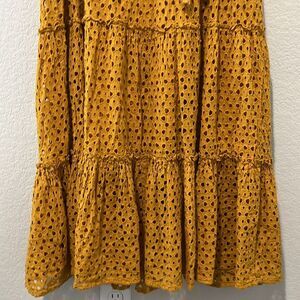 ANTHROPOLOGIE x FRYE Nuri Eyelet Dress Sleeveless Faux Wrap Mustard, Size S