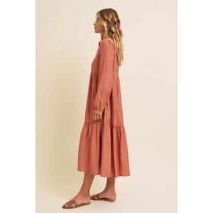 NEW IN FEBRUARY seasons change button down midi dress in rust