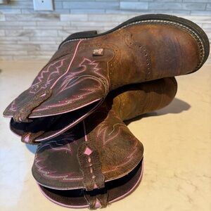 Justin Gypsy Brown Leather Embroidered Pull On Western Boot Size 8.5 B L9903