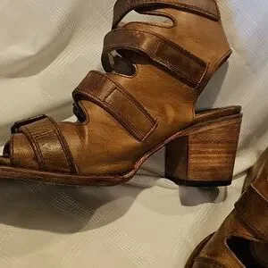 Crafted from rich brown leather, these Freebird fb quail sandals feature multiple adjustable straps for a customized fit. The open-toe design and sturdy sole ensure both style and durability, while the aged patina adds a vintage edge.