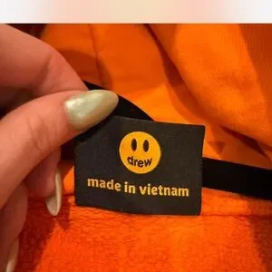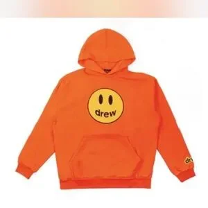 Embrace a vibrant look with the Drew House orange sweater, featuring a bold smiley face design on the front. Crafted from a cozy cotton blend, this sweater offers both style and comfort for any casual occasion.