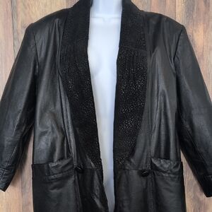 Pelle Studio Women’s Black Leather Trench Coat with Suede Accents 3006 M