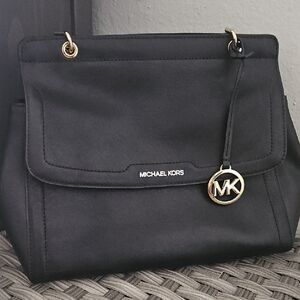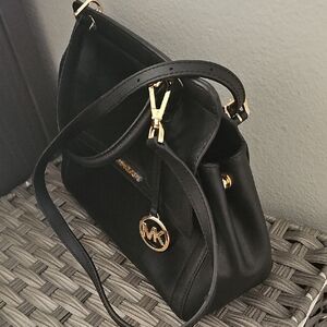 Michael Kors AVA Black Leather Shoulder Bag with Gold Accents