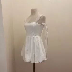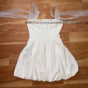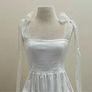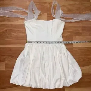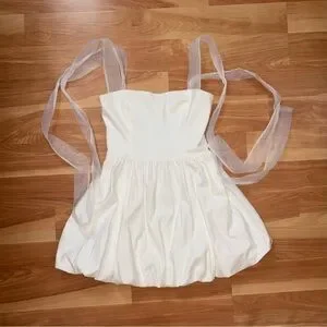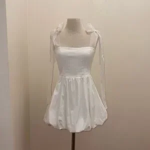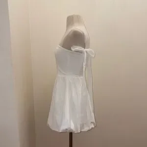 REFORMATION White Enza Square Ribbon Tie Strap Bubble Hem Minidress size 6 Small
