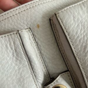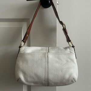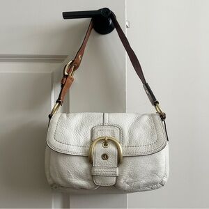 Vintage Coach White Pebbled leather shoulder bag with gold hardware.