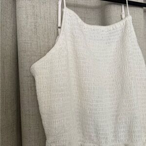 This stunning white maxi dress by Universal Thread is perfect for resort wear, featuring a sleeveless design with an adjustable spaghetti strap and high front neckline. The dress boasts a flowing silhouette with a fitted bodice that gracefully transitions into a loose, mid calf length skirt, offering both elegance and comfort for casual outings.