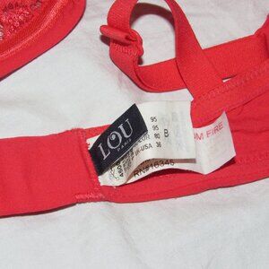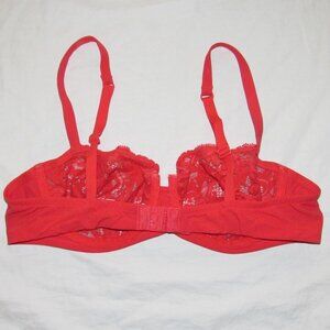LOU Paris Sheer Red Lace Demi Bra sz 36B Underwire Unlined