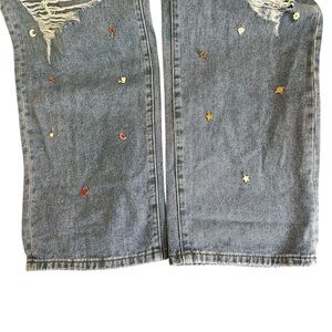 Charming Non Stretch Embellished Straight Leg Jeans - Medium Wash, Size 16