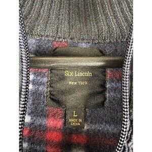 Six Lincoln New York Blue Mens Sweater Size Large Blanket Lined Zip Up Soft