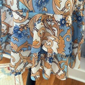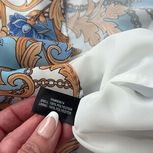 BOSTON PROPER New with tags blue white gold scarf chain print dress 0 2 XXS