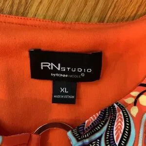 RN Studio by Ronni Nicole Orange Paisley Floral Midi Dress Size XL #D18