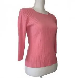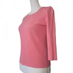 August Silk Vintage Ribbed Knit Womens 3/4 Sleeve Top Blouse Light Pink M