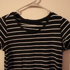 Bumpstart by Motherhood Maternity Black and white horizontal striped basic t, M