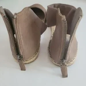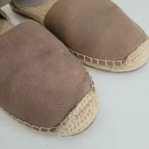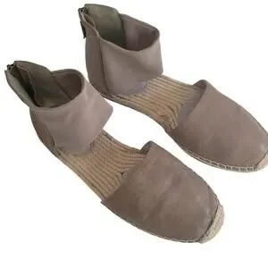 Eileen Fisher Coy Leather Closed-Toe Espadrille Flat in Beige Pewter, Size 9.5