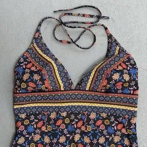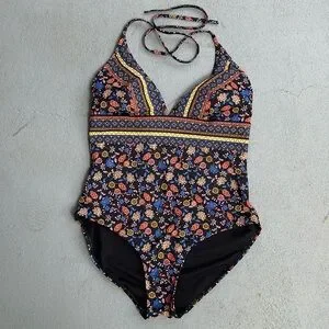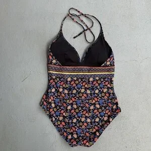 BODEN Halter Swimsuit Floral Plunge One Piece Size 12
