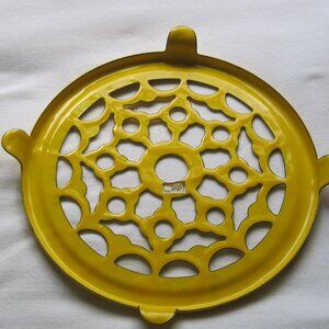 vintage Fitz & Floyd Yellow Enameled 8" Metal Vase Base Stand, Footed
