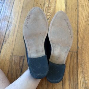 These sleek black mules from Sam Edelman feature a pointed toe and distinctive silver studded detailing around the sole. The smooth matte leather and low heel offer a comfortable yet edgy look, perfect for casual outings.