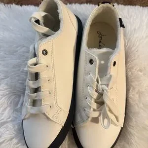 Chic cream sneakers with lace-up front. Ideal for everyday style. Size 7