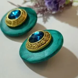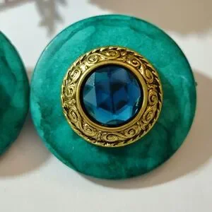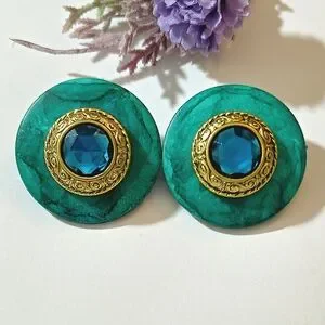 Vintage Green & Gold Acrylic Crystal Statement Earrings Clip-on Earrings