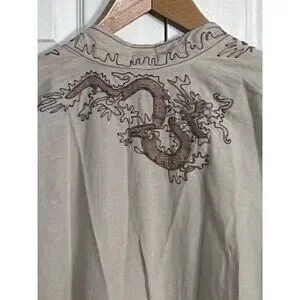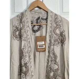 New With Tag Magnolia Pearl European Linen Dragon Embroidered Dashi Kimono