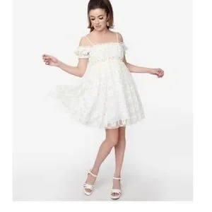 Smak Parlour White Daisy Off the Shoulder Babydoll Dress - 1X/16