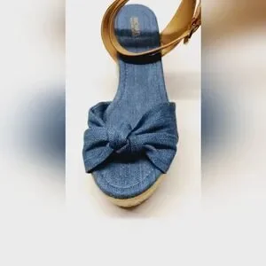 Michael Kors Blue and Tan Women's Wedge Sandals