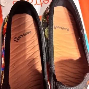 Experience comfort and style with BareTraps' black flats, featuring intricate embroidery on the upper. These slip-on shoes offer a casual yet elegant look, perfect for everyday wear. The flat sole and rounded toe ensure a comfortable fit throughout the day.