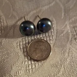 Sophisticated black pearl stud earrings. Perfect for any occasion.