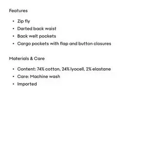 These are high-waisted cargo pants with a wide leg. They're cut from soft-brushed reverse sateen fabric with a comfortable degree of stretch.