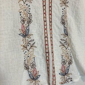 J. Jill Women's Boxy Oversized Peasant Blouse Embroidered Stitching Size XL *
