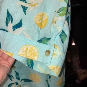 Catherines Petite Plus size Lemon Print Linen-Cotton Shirt size 26/28 WP