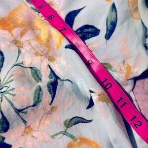 Spring has sprung and summer is upon us. Stay cool in this beautifully made button-down linen-cotton blend blouse in an enticing lemon blossom and fruit print.