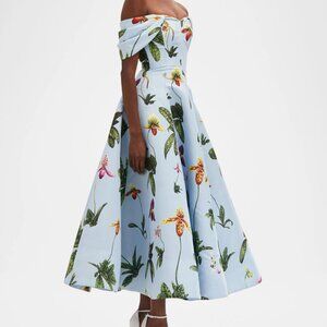 Oscar de la Renta Off-The-Shoulder Orchids Faille Gown