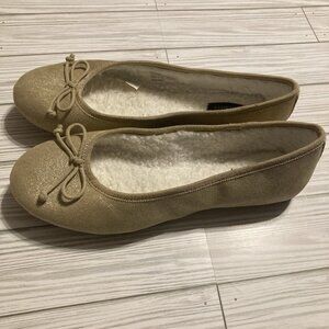 TALBOTS COZY SUEDE BALLET SLIPPERS TANISH GOLD IN COLOR SIZE 9M