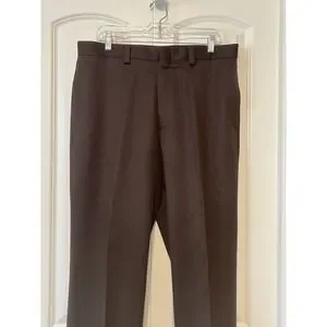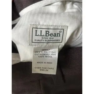 L.L. BEAN Brown 100% Wool Flat Dress Pants Men's Size 36x34 Mid-Heavyweight