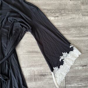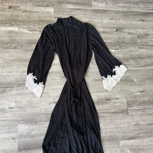 Natori Black and White Lace Trim Robe size M sku# 31