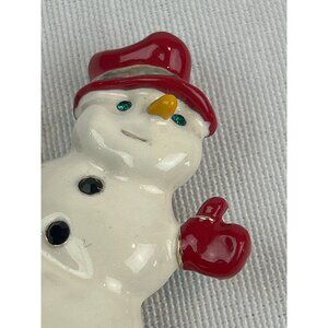 Vintage Snowman Brooch Pin Holiday Christmas White Red Goldtone