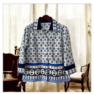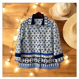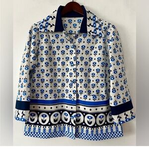 1970s True Vintage Mod Print Tulip Color Block Blazer/Blouse-EUC -Sz M 💙 🖤