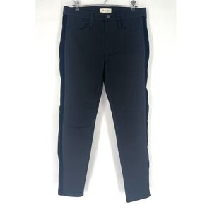 Madewell Sz 31 Mid-Rise Skinny Jeans Black Stretch Denim Velvet Tuxedo Stripes