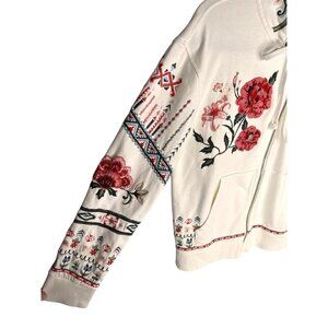 DRIFTWOOD Women's White Floral Embroidered Zipper Sweatshirt Jacket Small