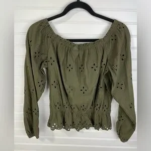 H&M dark green flower top with see through flower petals. Size medium women’s! In good condition! Has a cinched bottom