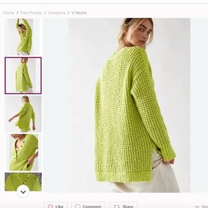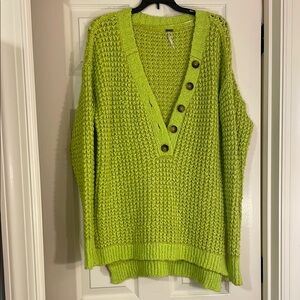 Great used condition Free People Whistle Thermal Henley Sweater in Acid Lime, size XS (fit is oversized --> for reference, I usually wear a large and it fits me well).