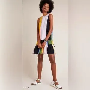 Preowned Anthropologie dress is in good condition! Very clean, no stains, rips or tears. Stylish sleeveless dress with a vibrant colorblock design is a perfect addition to your wardrobe this summer.