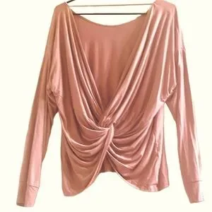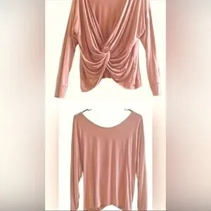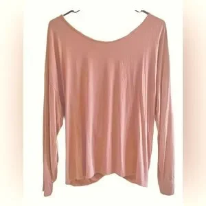 Women’s Very Low Back Long Sleeve Top Soft Comfy Cotton Blend In Pink Blush Sz M