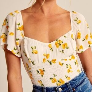 Abercrombie & Fitch Smocked Flutter Sleeve Lemon Top | Size