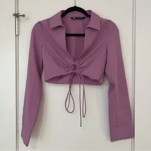 Long sleeve, buttons on sleeve, zipper on side under arm