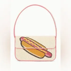NWT STAUD Tommy Beaded Bag Hotdog Weiner Dog Dachshund Doggie Summer Mustard