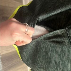 Stylish Men’s Xersion drawstring hoodie with green fabric that has a light gray color as well that’s similar to a lot of athletic clothing materials with neon yellow accents. Perfect for casual outings or athletics. The fleece lining isn’t too thick but adds to the comfy & soft feel of the hoodie. EUC